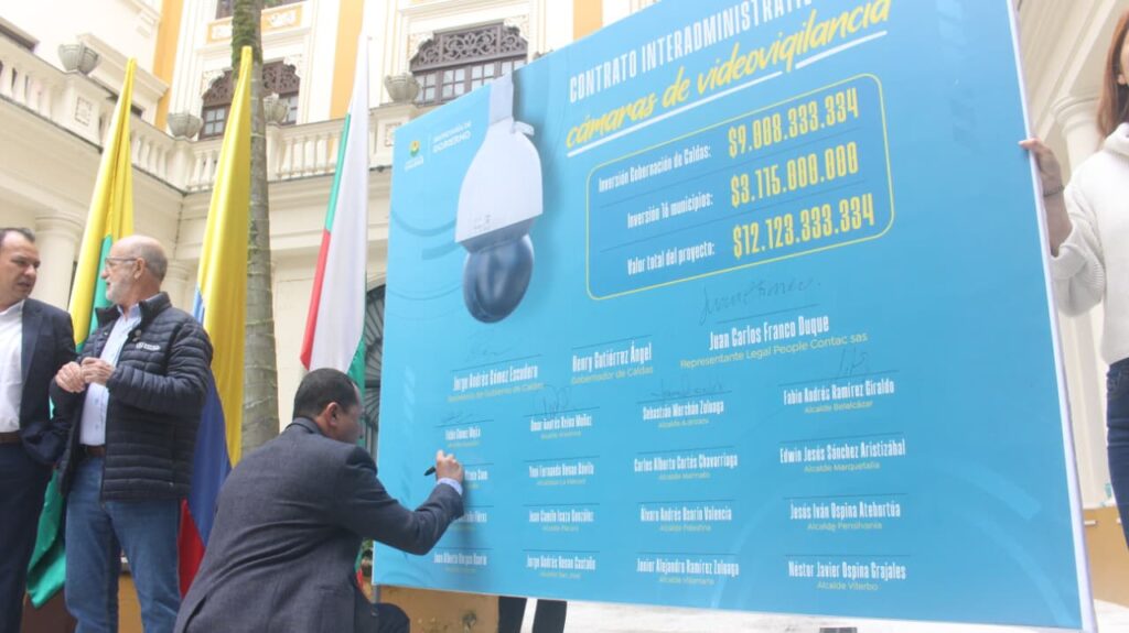 La Secretaría de Gobierno de Caldas oficializó hoy la firma del contrato interadministrativo con 16 municipios del departamento para la implementación y modernización del Sistema de Circuito Cerrado de Televisión (CCTV). Este proyecto estratégico alcanza un valor total de $12.123.333.334, demostrando un compromiso unificado por la seguridad.