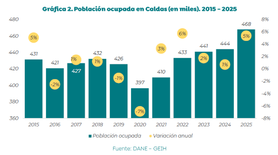 El boletín de CALDATA concluye que Caldas cuenta con un mercado laboral resiliente, en recuperación y con bases sólidas para su consolidación. El crecimiento del empleo, la reducción del desempleo y la diversificación productiva configuran un escenario positivo para el desarrollo territorial.