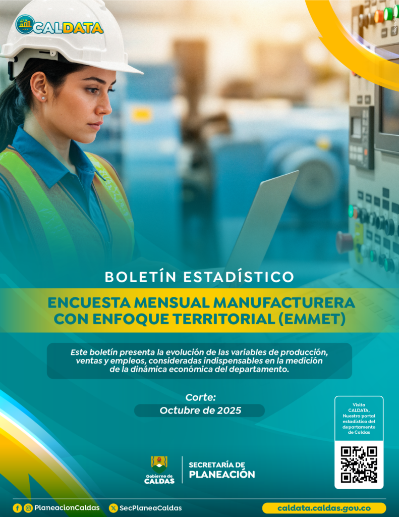 La Unidad Analítica de Datos de la Secretaría de Planeación Departamental presenta, a través del portal estadístico Caldata, el más reciente boletín con los principales resultados de la Encuesta Mensual Manufacturera con Enfoque Territorial (EMMET), elaborada por el DANE con corte a octubre de 2025. Las cifras confirman que la industria manufacturera de Caldas atraviesa uno de sus mejores momentos recientes, consolidando al territorio como el departamento con mayor dinamismo industrial del país.