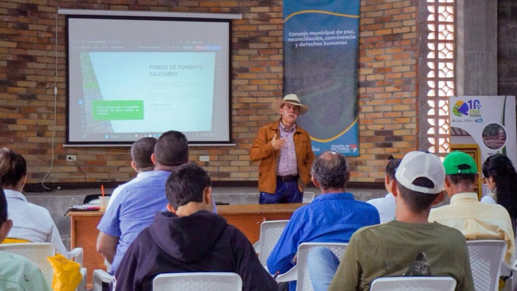 Con el propósito de fortalecer la cadena productiva del caucho natural y su industria en el oriente caldense, la Secretaría de Agricultura y Desarrollo Rural de Caldas, en articulación con la Alcaldía de Victoria, llevó a cabo un encuentro territorial en el que participaron los productores y delegados de las alcaldías de los municipios de Victoria, Norcasia, Marquetalia y Samaná. En esta jornada de articulación institucional y socialización técnica también estuvieron presentes los representantes del Ministerio de Agricultura y Desarrollo Rural y la Confederación Cauchera Colombiana (CCC).