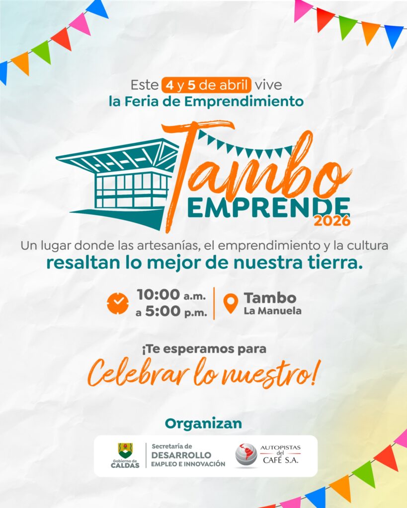 La creatividad, el talento y el emprendimiento se darán cita este 4 y 5 de abril en la feria artesanal Tambo Emprende, un espacio que busca visibilizar, fortalecer y dinamizar el trabajo de emprendedores y artesanos del departamento de Caldas.