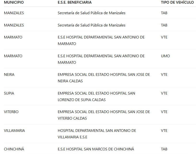 El recorrido culminó en Manizales, donde se entregaron dos ambulancias para la ciudad, una unidad móvil odontológica para Marmato. También se asignaron vehículos extramurales para los municipios de Villamaría, Supía, Chinchiná, Marmato y Viterbo, fortaleciendo la atención en salud en diferentes zonas del departamento.